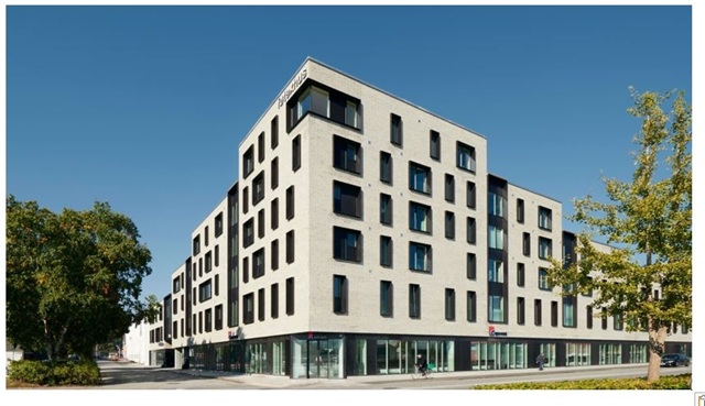Located within the "Føtexhus" building, this apartment enjoys a prime and central position in Vejle. The setting is at a prominent corner near Vejle Harbour, situated between the city center and the waterfront.