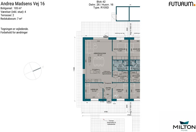 Andrea Madsens Vej, 105 m2, 4 rooms, 10,895 kr.