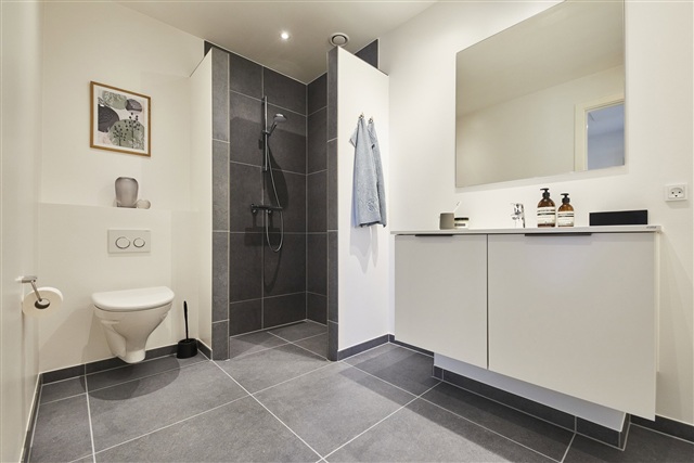 Outdoor living is enhanced by the terrace and sizable private garden, creating a smooth transition between indoor comfort and open-air relaxation, providing a perfect setting for unwinding, play, or enjoying pleasant moments outside. As a resident of Pigernes Kvarter, one becomes part of a modern neighborhood that emphasizes both safety and togetherness; a community app facilitates staying informed, participating in events, and connecting with neighbors.