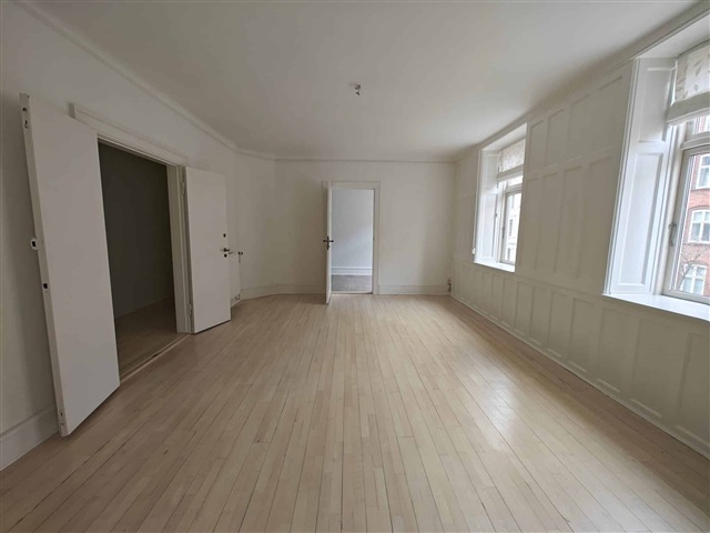 Offered for a two-year lease, this property presents an excellent option for those looking for a long-term residence that combines character and ample space at one of Copenhagen's most prestigious addresses. Comprising three well-sized rooms, including a large master bedroom, the apartment allows for versatile use, accommodating a bedroom, guest room, and a home office within its elegant surroundings.