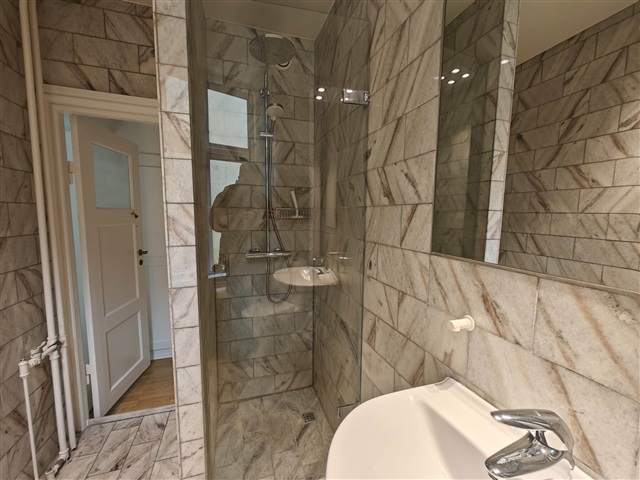 Situated in the core of the historic Gammelholm district, this distinguished apartment on Peder Skrams Gade offers a rare chance to reside in an area known for its refined and tranquil ambiance. Despite the peace, you are only steps away from the lively maritime atmosphere of Nyhavn and the bustling Kongens Nytorv. The cultural scene is immediately accessible, with the Royal Theatre, the Playhouse, and the Opera within walking distance, while Kongens Nytorv Metro Station, located just 500 meters away, provides swift connections to the rest of the city.The rental space boasts classic features such as high wainscoting panels, ornate ceiling moldings, and bright plank flooring, which together create an elegant setting in the spacious, sunlit living rooms. The floor plan is thoughtfully arranged, including both a generous dining room and a separate sitting room, offering a balance between shared and private spaces. The kitchen is designed for practicality, featuring white cabinetry complemented by warm wooden countertops. The sleek bathroom is styled with natural stone-look finishes, and an additional guest toilet adorned with decorative tiles provides extra convenience.