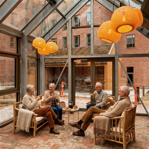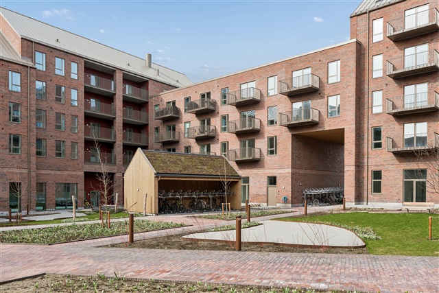 Key features of the apartment include three rooms covering 90 m², a west-facing balcony, an Invita kitchen with integrated white goods, and a bathroom furnished with both a washing machine and a tumble dryer. Underfloor heating runs throughout all rooms, complemented by Moland wooden floors. The building includes an elevator and attractive communal spaces.