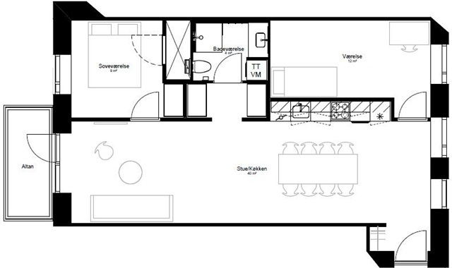This three-room apartment, located on the first floor at Stigsborg Parkvej, unit 2, spans 90 square meters and is ideal for a couple or anyone seeking ample space in a brand-new residence. Situated in Stigsborg, the property offers convenient access to the fjord, surrounding green spaces, and Aalborg's city center.The layout features a living area open to a built-in Invita kitchen equipped with integrated appliances, two bedrooms, and a generously sized bathroom with a washer and dryer. From the living room, there is direct access to a west-facing balcony that captures the afternoon and evening sun.