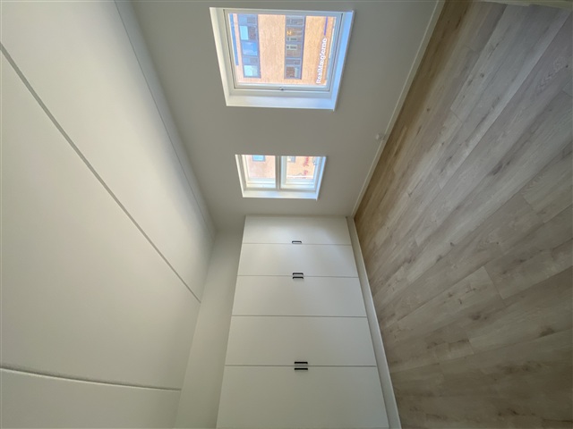 Inside, the apartments showcase exceptional craftsmanship with exclusive fittings from Svanekøkken. A sleek black design theme runs throughout, including a black kitchen faucet, black sink, and matching black cabinet handles, all contributing to an elegant environment. State-of-the-art appliances by Blomberg further enhance the contemporary atmosphere. The bathrooms feature wall-mounted toilets and tasteful, practical tiles. Recognizing the importance of storage, both entrance areas and bedrooms are fitted with spacious cabinetry from Svanekøkken, ensuring a consistent and refined style throughout the residence. This is not just a place to live but a thoughtfully designed home where attention to detail is paramount, encompassing comfort, style, and quality.