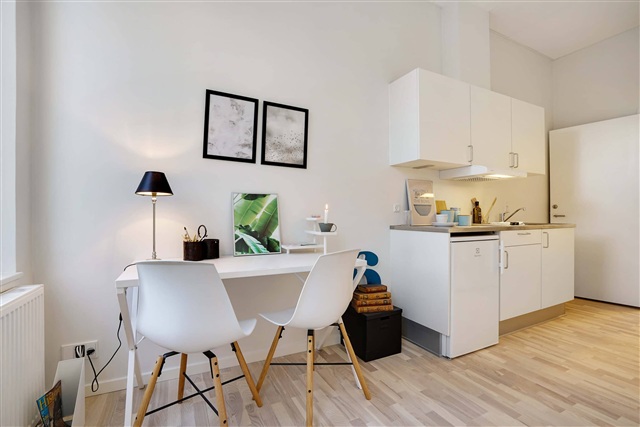 This residence blends New York-inspired design with bright, contemporary features. The dormitory is situated within the extensively renovated former headquarters of the Scandinavian Tobacco Company, a landmark that has occupied the site for approximately six decades. Surrounding the building is a large, park-like garden, offering a tranquil outdoor setting.Located within cycling distance to DTU, CBS, and KU, the property also provides easy access to the vibrant new urban district of Tobaksbyen in Søborg. This area boasts amenities such as a fitness center and various shops as immediate neighbors. The neighborhood's composition of residences, offices, green spaces, plazas, and pathways creates an energetic and appealing environment.