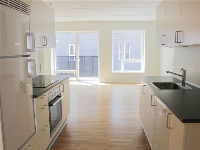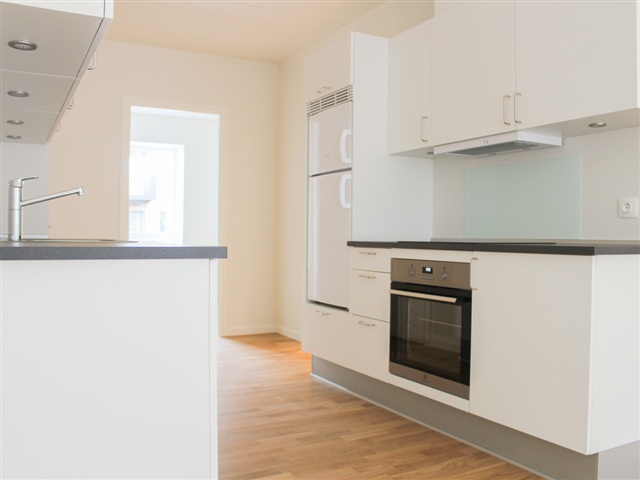 Access to the balcony or terrace is available directly from the living room. In the kitchen, there is a full-sized dishwasher, induction cooktops, and plenty of countertop space to accommodate cooking activities and kitchen appliances.