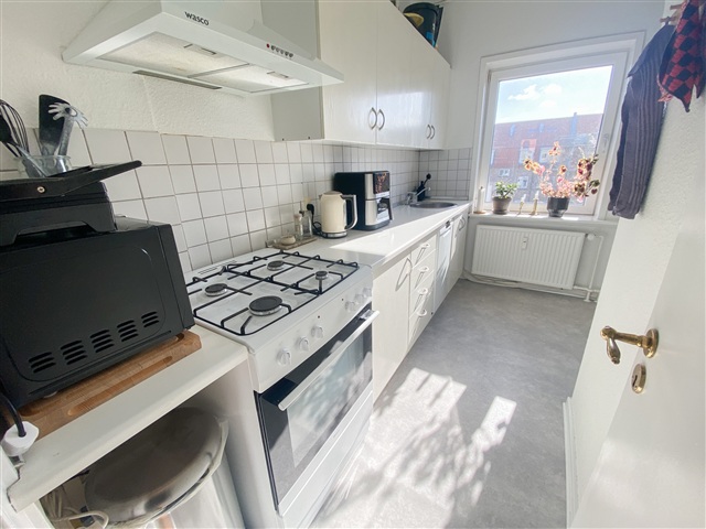Residents benefit from an active local environment with cafés, shopping, and small boutiques, in addition to nearby green spaces like Østre Anlæg, reachable within a few minutes on foot. The area is well served by bus routes, cycling paths, and convenient access to the motorway network, making it appealing to students, young couples, and first-time buyers alike.
