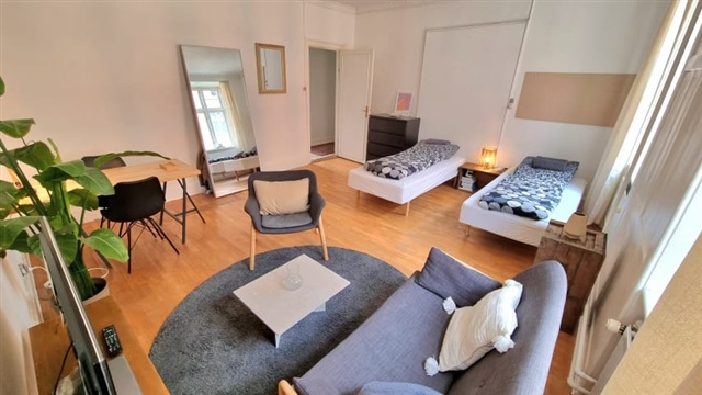 A furnished room measuring 25 square meters is available for rent starting from June 1st in a spacious apartment of 173 square meters, located centrally in Vesterbro. The apartment features a combined dining and conversation kitchen, a large balcony that receives ample sunlight, and access to a green, enclosed courtyard. The rental is intended for one individual only, preferably a non-smoker who values cleanliness and order. Included with the room are amenities such as a television and WiFi, while the apartment is equipped with a washing machine and dishwasher, among other facilities.Applicants are kindly requested to provide information about themselves, including age, employment status, and other relevant details. Please note that only serious inquiries will be considered.