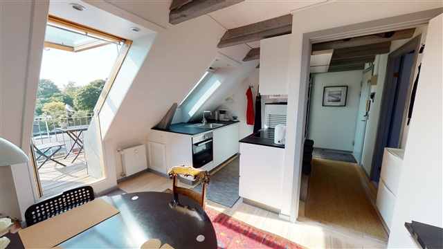 This unfurnished studio apartment is situated on Bjelkes Allé within a building that includes an elevator. It is particularly suited for a single occupant or a student seeking a convenient and central location in Copenhagen N. The apartment offers a bright and practical living space with flexible layout options. The kitchen comes equipped with an induction cooktop, an oven, and a refrigerator/freezer. Residents have access to a shared laundry room located in the basement.The property also features a charming communal courtyard and useful amenities such as bicycle parking. Its location is highly desirable, with close proximity to schools, daycare facilities, shops, and public transportation options including buses, the metro, and the train station. This residence provides an excellent opportunity for those wishing to live centrally while enjoying easy access to the city's various offerings.