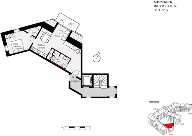 Situated in a remarkable development with immediate access to everything the town of Hillerød offers, this location is distinguished by its proximity to Frederiksborg Castle, allowing residents to enjoy a captivating atmosphere including the Castle Lake and Castle Garden. Within a brief walking distance lie Hillerød's lively shopping street and the Slotsarkaderne, home to a variety of shops and restaurants. Additionally, everyday life here can include visits to Streetfood Hillerød, a nearby gently flowing stream, and private green allotment gardens where legumes and chili peppers are cultivated during the summer months, all located just a few meters from the building.