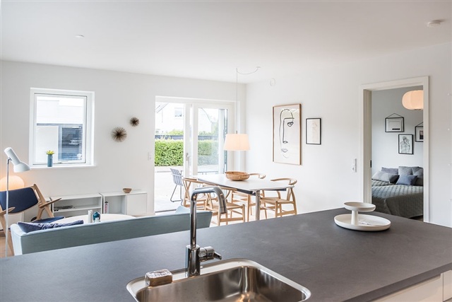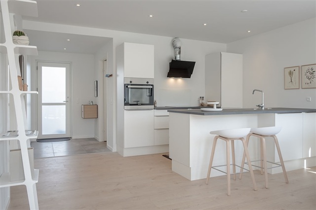 The interior is both bright, spacious and friendly, built in classic and solid materials. Italian tiles, underfloor heating, Genwex system and in addition everything in white goods.