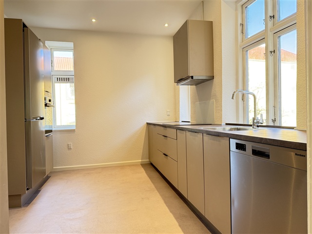 This spacious and recently renovated apartment is situated on the sought-after Stemannsgade, located in the very center of Randers. Offering a generous living area of 117 square meters, the residence includes four rooms that provide ample versatility, suitable for individuals living alone, couples, or families alike.The apartment is ready for immediate move-in and features a brand-new kitchen and bathroom, designed with an emphasis on both functionality and contemporary style. Additionally, all appliances are newly installed throughout the home, ensuring convenience and ease from day one.