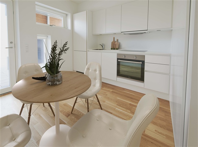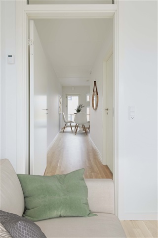 The Tulipanhusene complex is situated in Tilst, surrounded by lovely natural scenery and verdant shared spaces. Shops are conveniently nearby, and the supercycle path just outside the door offers quick and easy access to the city center.