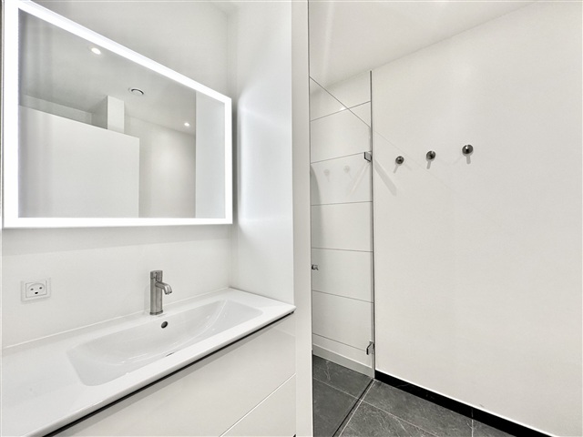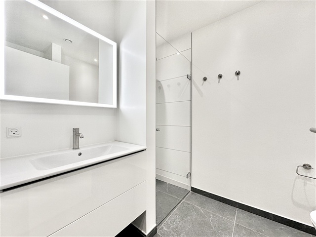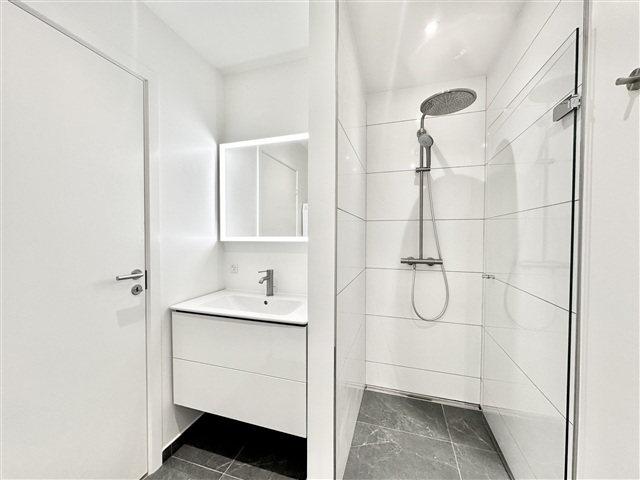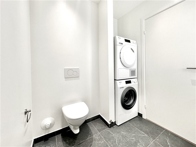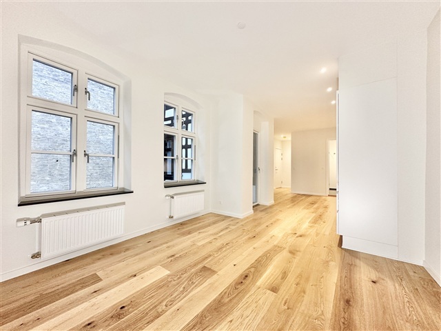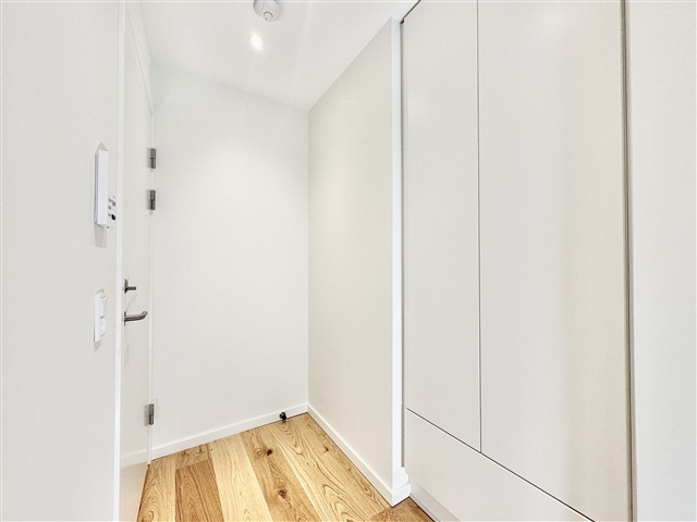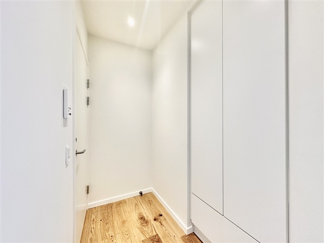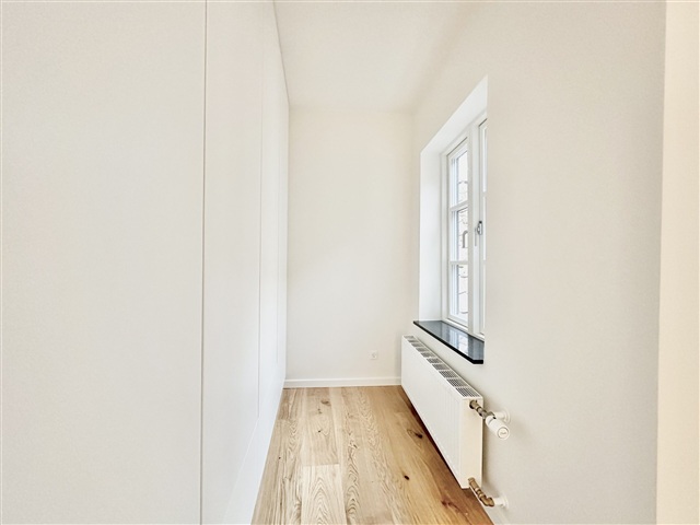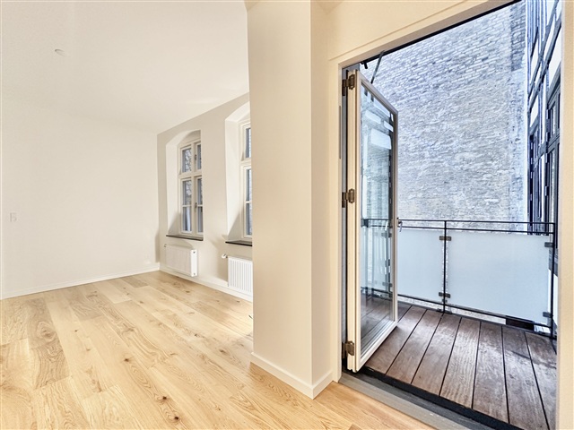 The property is situated in the sought-after pedestrian street area of Odense, close to numerous cafés and shops within the city.This apartment offers a total of 68 square meters and features a spacious entrance hall equipped with built-in wardrobes, granting access to a stylish bathroom. The bathroom includes a generous shower area, a basin with cabinet, and a mirror from Duravit, complemented by sanitary fittings from Grohe. Additional highlights are underfloor heating along with a private washer and dryer.