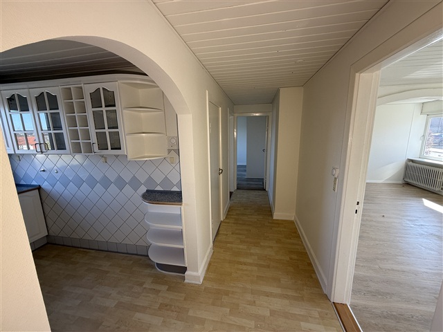 Centraltbeliggende 4-værelses lejlighed med parkering, altan, have, hvidevarer klar til indflytning.