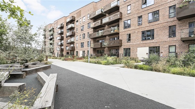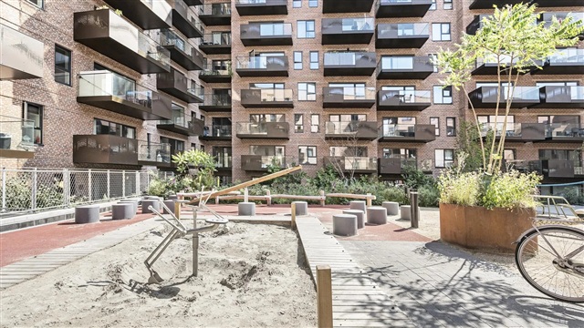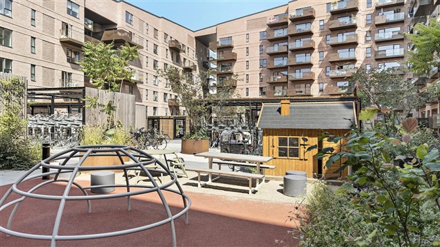 The building, Lavetten, is the creation of the award-winning architectural firm Danielsen Architecture, celebrated for its modern architectural expression. The structure's southwestern corner has been designed with a reduced height to enhance light penetration and panoramic views for all residents. Lavetten features a large, open courtyard thoughtfully divided into zones that cater to distinct needs, whether for play and activity or quieter, more private relaxation areas. This development offers residences constructed with a focus on quality and energy efficiency. Examples include climate-adapted rainwater management, comprehensive waste sorting, low-energy glazing throughout, and household appliances graded at minimum energy class A+. Lavetten qualifies as a low-energy building that meets all insulation, ventilation, and airtightness requirements under the A2020 energy certification standard-surpassing expectations by 10%. The list of premium features is extensive, including elevator access directly to the door (excluding the upper duplex units), a convenient technical shaft, and the option to rent parking spaces in the basement.
