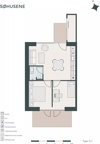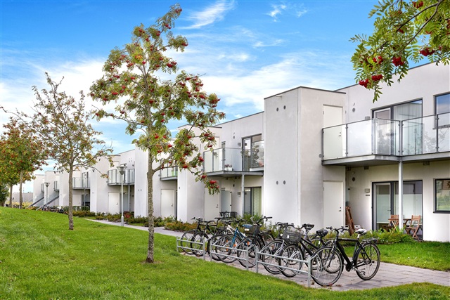 Every square meter is efficiently utilized within the building, which also offers several amenities such as permission to keep pets, shared green spaces, district heating, a storage shed, and complimentary parking. The Søhusene complex is located in Tilst, surrounded by natural greenery featuring mature trees and a small lake. Convenient access to shopping is available nearby, and with a bus stop and a super cycle path right outside, the city center is easily reachable.
