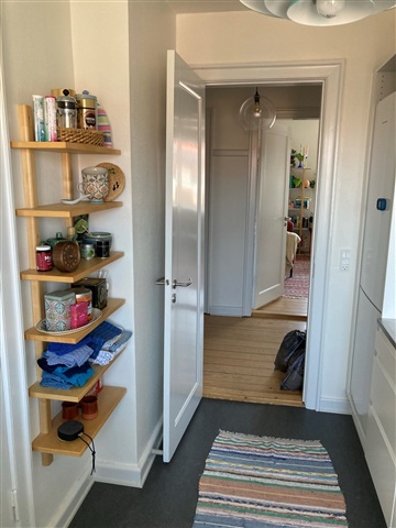 This two-room apartment designed for shared living features two bright and spacious rooms, one of which opens onto a charming balcony. The kitchen is separate and fully equipped with a refrigerator/freezer, stove, extract fan, and dishwasher. Additionally, the apartment includes a generous hallway that connects all rooms, along with a practical bathroom.Within the building, residents have access to a well-maintained communal laundry room as well as a cozy courtyard area for shared use. Situated in Trøjborg, the apartment benefits from proximity to inviting cafés, shops, and various retail options. Nature enthusiasts will appreciate being close to green spaces such as Riisskoven and also within reach of the beaches at Bellevue and Den Permanente.