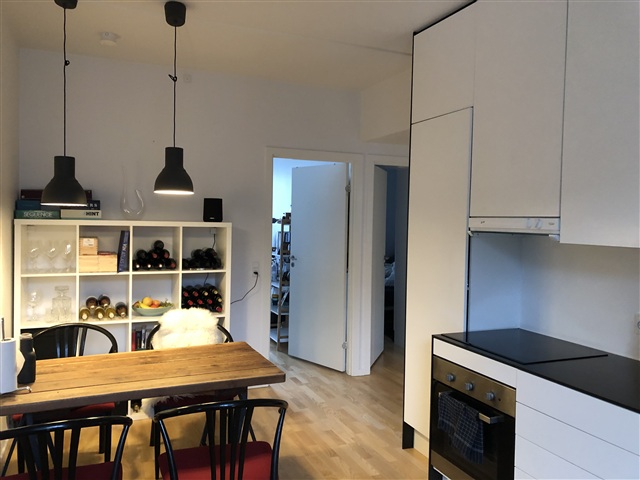 The apartment features a contemporary, fully equipped kitchen-dining area, complete with a refrigerator/freezer, built-in oven, cooktop, extractor hood, and dishwasher. There are three well-designed bedrooms, each fitted with large built-in wardrobes providing ample storage space. One of these bedrooms offers direct access to the apartment's balcony. The bathroom has a modern design with integrated cabinet storage, and it includes a shower enclosure as well as both a washing machine and a tumble dryer.The building includes an elevator for convenient access, and the basement offers dedicated space for bicycle storage and additional storage needs. Situated in the sought-after Ceresbyen neighborhood, the residence is surrounded by a vibrant student community connected to VIA University College, alongside a variety of cafés, restaurants, and shopping options. Nearby, residents also have access to green areas such as Ceresparken, the Botanical Garden, and the river.