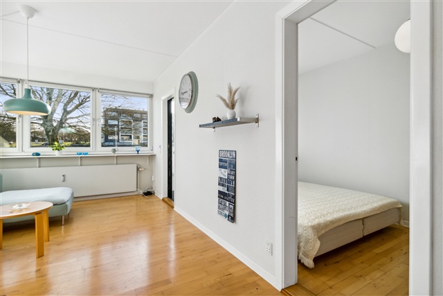 Interior:The apartment is furnished with an entrance to an entrance/distribution hall, where on the right you enter the apartment's beautiful bathroom with shower. On the left you enter the kitchen, which is a well-maintained kitchen with a view of the parking area. From the distribution hall there is access to a large living room and a bedroom. From the living room there is a view of the association's green area. In addition, the apartment has a lovely enclosed balcony.
