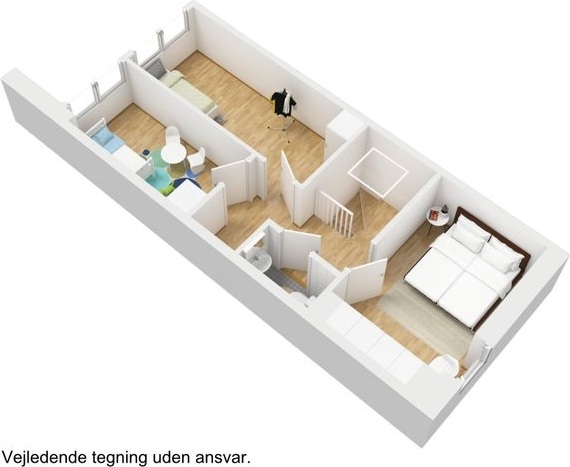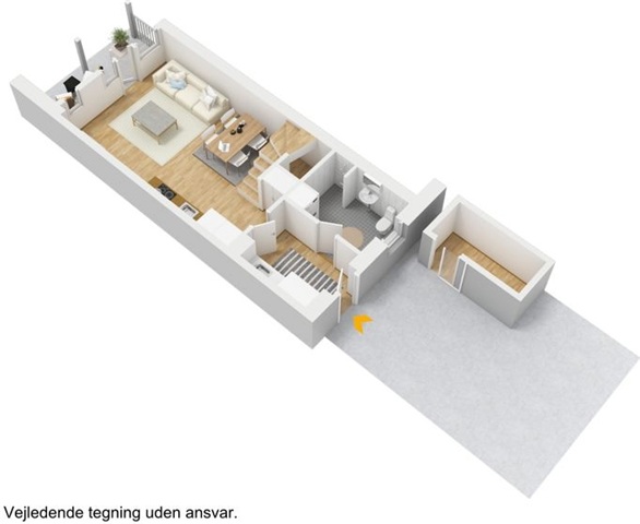 Located in the Falbeparken area of Randers NV, this quaint terraced house offers a welcoming entrance hall that provides access to the kitchen combined with a dining area, as well as a bathroom equipped with a washing column. The kitchen and living space are thoughtfully designed, allowing sufficient room for both a dining table and a comfortable seating area.From the living room, there is direct access to a terrace facing south, perfect for enjoying sunlight. The first floor features a small landing that can accommodate a compact workspace or a cozy nook. Additionally, the upper level includes a separate toilet, two spacious bedrooms, and a master bedroom with built-in wardrobes.