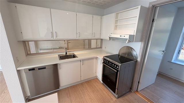 A spacious one-bedroom apartment is available for rent in the heart of Kolding, situated in the rear building on Jernbanegade, adjacent to Koldinghus. This bright apartment enjoys a highly convenient and central location, placing it within easy reach of the town's shops and various amenities.The rental unit comprises an entrance hall, a kitchen equipped with either a dishwasher or a washer-dryer-tenant's choice-a bedroom, a combined living and dining area, as well as a bathroom. Residents have access to a large shared terrace and may also rent a storage room if desired. For those needing parking, spaces can be rented within 200 meters of the property.