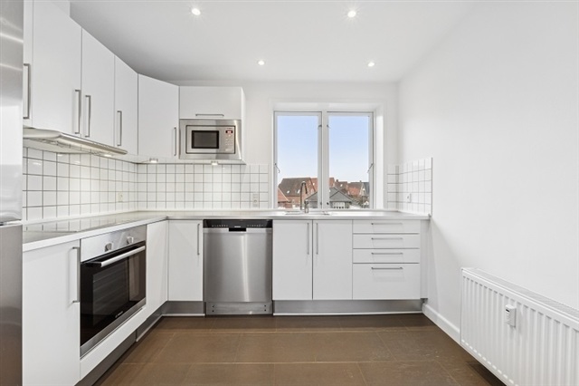 The apartment is situated in a peaceful neighborhood within the charming Skibhuskvarter. It offers convenient proximity to shopping facilities, public transportation, schools, and the city center.This residence has undergone a comprehensive renovation and features a kitchen fully equipped with all major appliances. The bathroom includes both a washing machine and a dryer. The bright hallway is fitted with ceiling spotlights, contributing to a pleasant ambiance throughout the space.