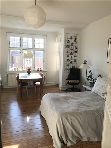 The building itself includes an elevator, a communal laundry facility, bicycle storage, and additional storage options. Heating costs are paid as an advance, while water expenses are covered within the rent. The location is ideal, situated in Aarhus C just moments away from the river, Mølleparken, and the charming streets of Vestergade, known for its abundance of cafés and restaurants. Public transportation is conveniently accessible, with the bus hub at Klostertorvet located only 400 meters from the property.