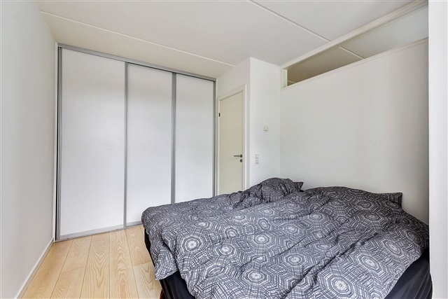 - Bedroom with exit to the terrace. There is a closet wall in the bedroom.