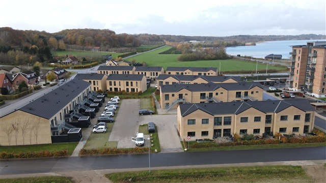 Access to the apartment is gained via an exterior staircase landing, which presents adequate space for a small café table. Included with the property is a private storage shed. The location benefits from good parking facilities as well as easy access to beautiful green communal areas. Durable oak laminate flooring runs throughout the apartment, which is fitted with underfloor heating and a ventilation system in all rooms to ensure a comfortable indoor environment. Additionally, the residence has fiber optic internet connections with provider choice freedom, and features a crisp, flat wooden ceiling. The images shown are model photos, and adjustments may apply.