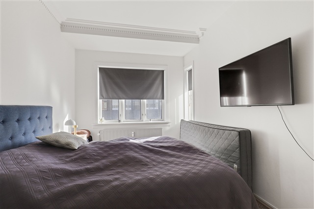 The apartment includes a well-sized, regularly shaped bedroom featuring built-in wardrobes that extend from floor to ceiling, offering extensive storage solutions. Direct access to a balcony from the bedroom provides an additional outdoor space to enjoy fresh air.