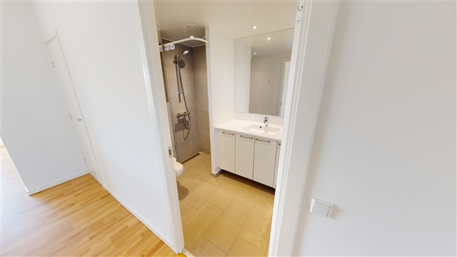 Erda-2 offers a selection of well-designed apartments, each thoughtfully laid out to cater to a variety of preferences and household types. Although the floor plans vary, every unit benefits from efficient use of space and includes private outdoor areas such as a terrace, balcony, or roof terrace. The kitchens, supplied by Invita, come fully equipped with all necessary major appliances and are seamlessly integrated into the living and dining areas, promoting an open and inviting atmosphere. Spacious bathrooms feature a large shower enclosure and are fitted with a washing machine, while the bedrooms and living rooms showcase attractive parquet flooring. In contrast, the bathrooms have tiled floors with underfloor heating. The property itself boasts an inviting courtyard garden complete with a small playground area. Apartments are move-in ready and residents have the option to rent a parking space in the basement. Each home includes its own terrace or balcony, and the location offers convenient proximity to Aarhus city center. Please note that the included photos and 3D scans may represent a similar model apartment rather than the exact unit.