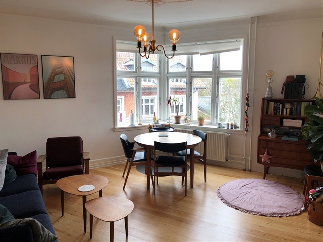 In the basement, residents have access to bicycle storage, additional storage facilities, and a communal laundry room. Furthermore, there is a cozy shared courtyard area available for all residents' use. The sought-after Øgadekvarter district offers charming streets, cafés, and shopping opportunities and is conveniently close to both forests and green spaces. The property is ideally situated between the lively Latin Quarter and the university park.
