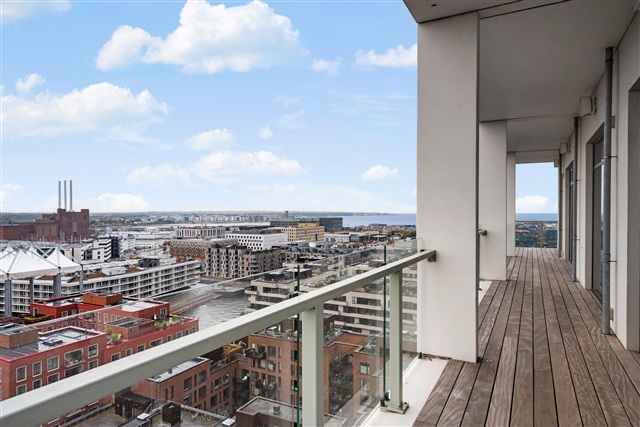 Situated in Nordhavn, this spacious 227m2 apartment is now available for rent. It features a generously sized kitchen and dining area, alongside a large living room offering sweeping panoramic views of the cityscape. The residence includes three sizable bedrooms, a walk-in wardrobe, and two bathrooms. The layout is carefully designed with attention to detail, and high-quality materials have been selected throughout. Additionally, there is access to a substantial terrace, providing an exceptional vantage point over Copenhagen's capital.The residence is housed within "FRIHAVNSTÅRNET," a building originally constructed as a grain silo in 1959 and thoughtfully transformed into contemporary, upscale apartments. Recognized as an architectural icon and award-winning structure, the building enriches the neighborhood with numerous amenities. Residents can make use of the outdoor fitness area located on the adjacent building, which also serves as a parking garage. Others might enjoy swimming in the nearby harbor bath or exploring the local cafés, restaurants, and cinema. The closest Metro station, offering rapid transit to the city center in just minutes, lies only a short distance away.