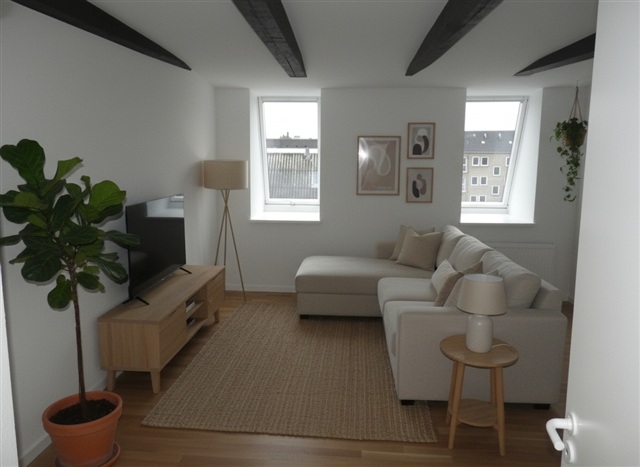 This charming four-room penthouse apartment is situated in the heart of Vesterbro, featuring a magnificent balcony with views overlooking the fjord. The residence offers a bright and appealing living space where the vibrant city atmosphere seamlessly meets picturesque natural surroundings.Recently updated, the apartment includes a sleek kitchen and a renovated bathroom, ensuring both comfort and practicality in daily life. The layout comprises well-proportioned rooms that present flexible furnishing options, contributing to a welcoming and pleasant environment.