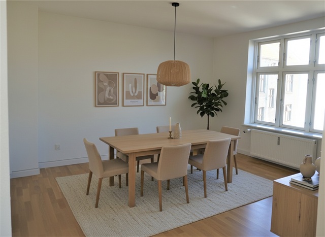 Situated on Kastetvej in the sought-after Aalborg Vestby area, this attractive three-room apartment presents a welcoming atmosphere. The residence features a recently refurbished kitchen and bathroom, both designed to offer a contemporary and clean aesthetic. At its heart lies a spacious kitchen-dining area, providing ample room for cooking and socializing, making it well-suited for everyday living as well as entertaining guests. Additionally, the apartment includes large, bright rooms that allow for flexible furnishing options. This property represents an excellent choice for those looking to combine character, practicality, and a central location.