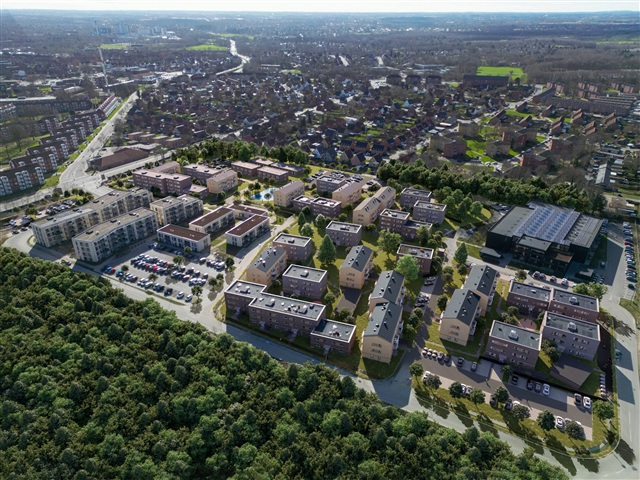 Located within Thors Have, residents enjoy a verdant setting offering abundant opportunities for physical activities, nature experiences, sports, and outdoor recreation. Its central position places daily grocery stores and the Light Rail (Letbanen) within close reach, with Odense C only a 15-minute bike ride away. Free parking is available for residents.