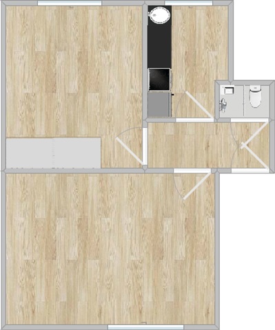 The entire apartment has beautiful light wooden floors and high ceilings. There is an incredibly good amount of light throughout the apartment, as there is no tall building outside the windows.