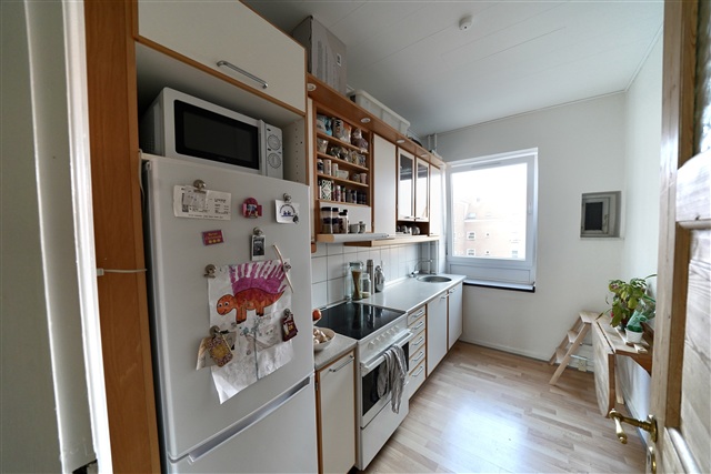 The apartment contains a spacious hallway, where you have access to all the rooms in the apartment and space to hang your outerwear. The apartment has a large, bright living room with stucco and a rosette on the ceiling. The living room is easy to decorate with the large regular room. In the living room there is a large window that provides a fantastic amount of light. The bedroom faces the courtyard and contains large built-in wardrobes, with plenty of storage space and a lovely large window. In the bright kitchen there is an oven, stove, extractor hood, and fridge/freezer. There is also an incredible amount of storage space. The apartment has its own bathroom with toilet and shower.