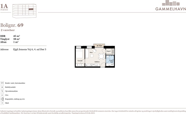 Images will be provided shortly.This appealing two-room apartment spans 45 square meters and features a bright open-plan kitchen and living area equipped with a sleek kitchen containing all necessary appliances. The sleeping area includes built-in wardrobes, while the bathroom is spacious and fitted with a combined washer and dryer. Additionally, the apartment offers a convenient storage room and a Spanish balcony that allows ample natural light to enter.