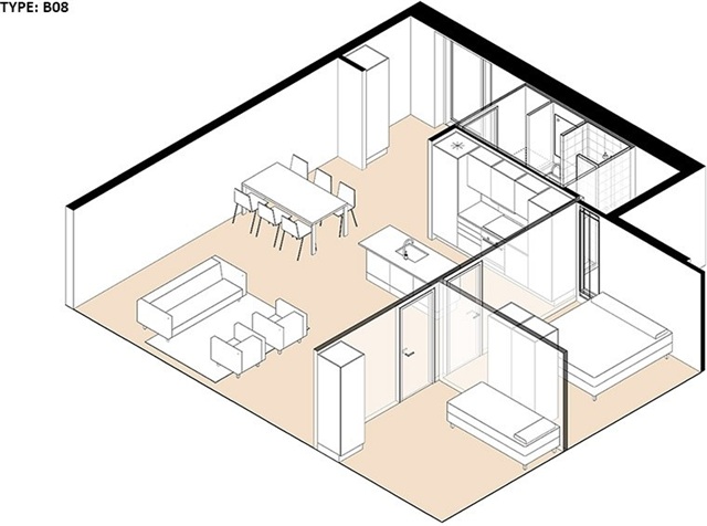 The apartments' central placement in Gartnerbyen makes them particularly suitable for singles, young adults, and seniors alike who seek secure and welcoming surroundings.