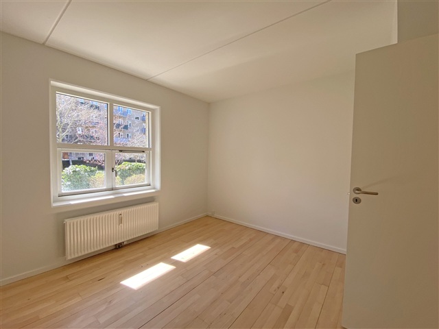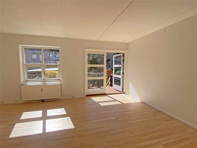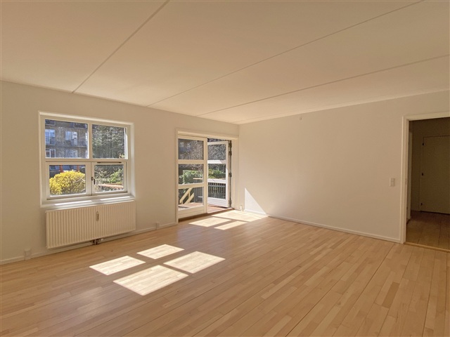 Situated on a quiet side street branching off from Strandvejen in Hellerup, near the well-known Tuborg Bottle landmark, this bright and thoughtfully designed apartment spans 100 square meters. Upon entering, you are welcomed by a spacious and inviting hallway that leads into a generous living room filled with natural light. From here, there is direct access to a private terrace, which opens onto a charming communal green garden area. The residence includes two well-sized bedrooms, offering versatile options for furnishing and layout. The kitchen has been recently updated and features a sleek, modern dining kitchen with white cabinetry, combining style and practicality. Likewise, the bathroom has undergone a renovation, showcasing timeless white materials that contribute to a refined and welcoming atmosphere. This desirable home is located in a sought-after neighborhood, close to shopping facilities, cafés, Hellerup School, Hellerup Harbor, tennis courts, and public transportation.