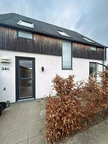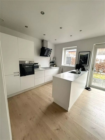 This townhouse offers a harmonious blend of natural light and refined living in a move-in ready condition that exudes a welcoming ambiance.Inside, the home spans four rooms, beginning with a generously sized entrance hall that seamlessly marries practicality with elegance. The entrance area is equipped with both a washing machine and dryer and provides access to a neat guest toilet. Proceeding from here leads into a bright, open kitchen and dining space which flows effortlessly into a cozy living room. From the living area, there is direct access to a charming terrace and an impressive garden, creating a secluded outdoor setting perfect for relaxation and play. Upstairs, the layout comprises a spacious master bedroom along with two additional rooms, all fitted with built-in wardrobes offering ample storage. The sophisticated bathroom combines style with utility, while underfloor heating is installed throughout the entire residence to ensure comfort throughout all seasons.
