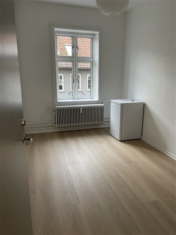 The apartment is located on Vestergade and has a new kitchen and renovated rooms. Here you will have: