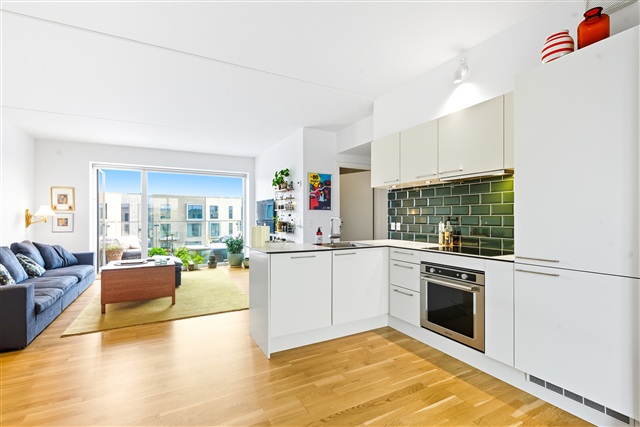 This newly built, contemporary apartment is situated in Trekroner and occupies the top unit of the building, although it is located on the second floor. The residence offers two terraces: one facing east with a view overlooking a lake, and the other oriented to the west, providing ample space for outdoor dining during summer evenings. The location is conveniently within a 10-minute walk of Trekroner station, from which trains run directly to Copenhagen Central Station in approximately 20-25 minutes. Additionally, the apartment is positioned close to Roskilde and surrounding natural areas.Included with the rental is a private parking space, covered in the rent. The lease term for this property is set for three years. Please note, the apartment is exclusively available to expatriates.