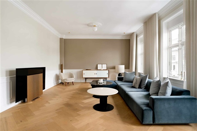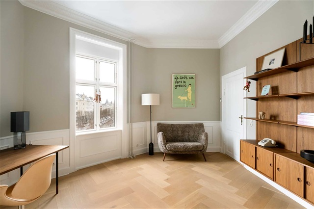 This exclusive and exceptionally well-utilized residence in the heart of Frederiksberg features underfloor heating throughout and presents as freshly updated. It is offered unfurnished, primarily to expatriates, with a no-pets policy. Viewings can be arranged by appointment.