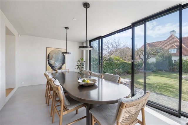 Situated prominently on the Strandpromenaden at Svanemøllen, this elegant classic functionalist villa dates back to 1397. Only a handful of properties grace the waterfront route in Østerbro, offering direct views across the Øresund.The property underwent a comprehensive two-year renovation, resulting in a strikingly sophisticated residence spanning a total of 330 square meters. Of this, 108 square meters are located in the basement. Every detail has been meticulously restored by skilled architects and craftsmen who have thoughtfully blended the timeless 1930s functionalist style with a vision for the future. Nothing has been spared in the refurbishment, and the panoramic water views remain truly breathtaking. Previously, Strandpromenaden served as a thoroughfare, but today its traffic is limited and rerouted around the area, with a speed restriction of 40 km/h ensuring minimal disturbance.