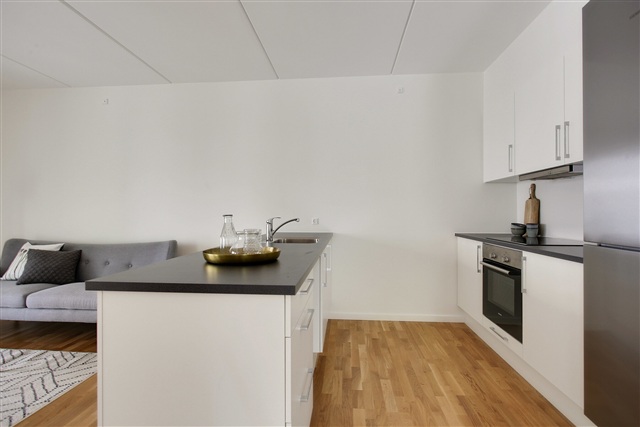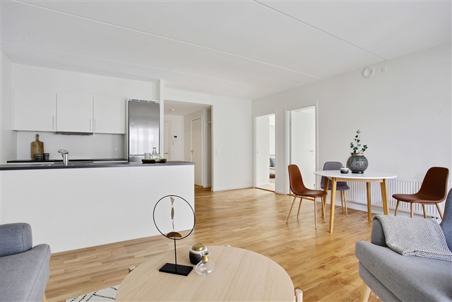 This charming and contemporary apartment on Eternitten offers a spacious and well-designed living space of 95 m² at Kildevældet, an ideal location for those seeking proximity to the city without its noise. The residence benefits from abundant natural light throughout.Inside, the apartment features three regular-sized bedrooms, each equipped with at least one built-in closet, ensuring ample storage. The large, open-plan kitchen and dining area invite socializing with generous space and plenty of daylight. The bathroom is fitted with modern amenities including underfloor heating, a washing machine, and a tumble dryer. Additionally, a sizable balcony provides enough room for lounge furniture, a barbecue, and sunbathing.