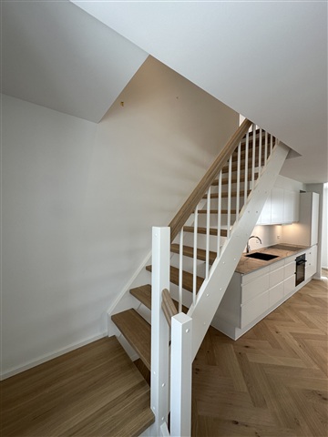 On the historic property Kypergården, close to Trørød's shopping square, you will find this completely renovated apartment. The home has been tastefully renovated with beautiful light materials, wooden floors and underfloor heating in all rooms. The home is on two floors and has two bathrooms. The apartment overlooks a cozy shared courtyard. In addition to the cozy courtyards with cobblestones, Kypergården has a large shared recreational area and a shared parking lot with the possibility of charging electric cars. Pets are allowed by arrangement.If you want to read the description in its original language that is also possible. Read original description
