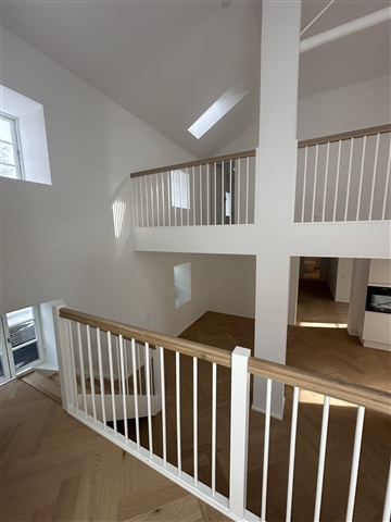 On the historic property Kypergården, close to Trørød's shopping square, you will find this completely newly renovated apartment. The home has been tastefully renovated with beautiful light materials, wooden floors and underfloor heating in all rooms. The home is completely unique with its distinctive floor plan and use of the lower floor to accommodate, among other things, an unusually large bathroom with a bathtub and a room with a wall-in. The apartment overlooks a cozy shared courtyard environment and, like the other residents of Kypergården, the tenant has access to a shared green recreational area and a shared parking lot reserved for residents and where there is the possibility of charging electric cars. The home has two bathrooms. Pets are allowed by arrangement.If you want to read the description in its original language that is also possible. Read original description